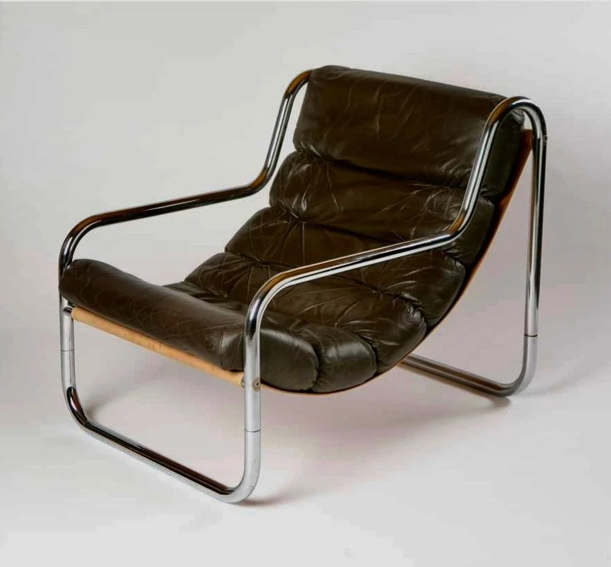 MID CENTURY LEATHER & CHROME SLING CHAIRS - A PAIR